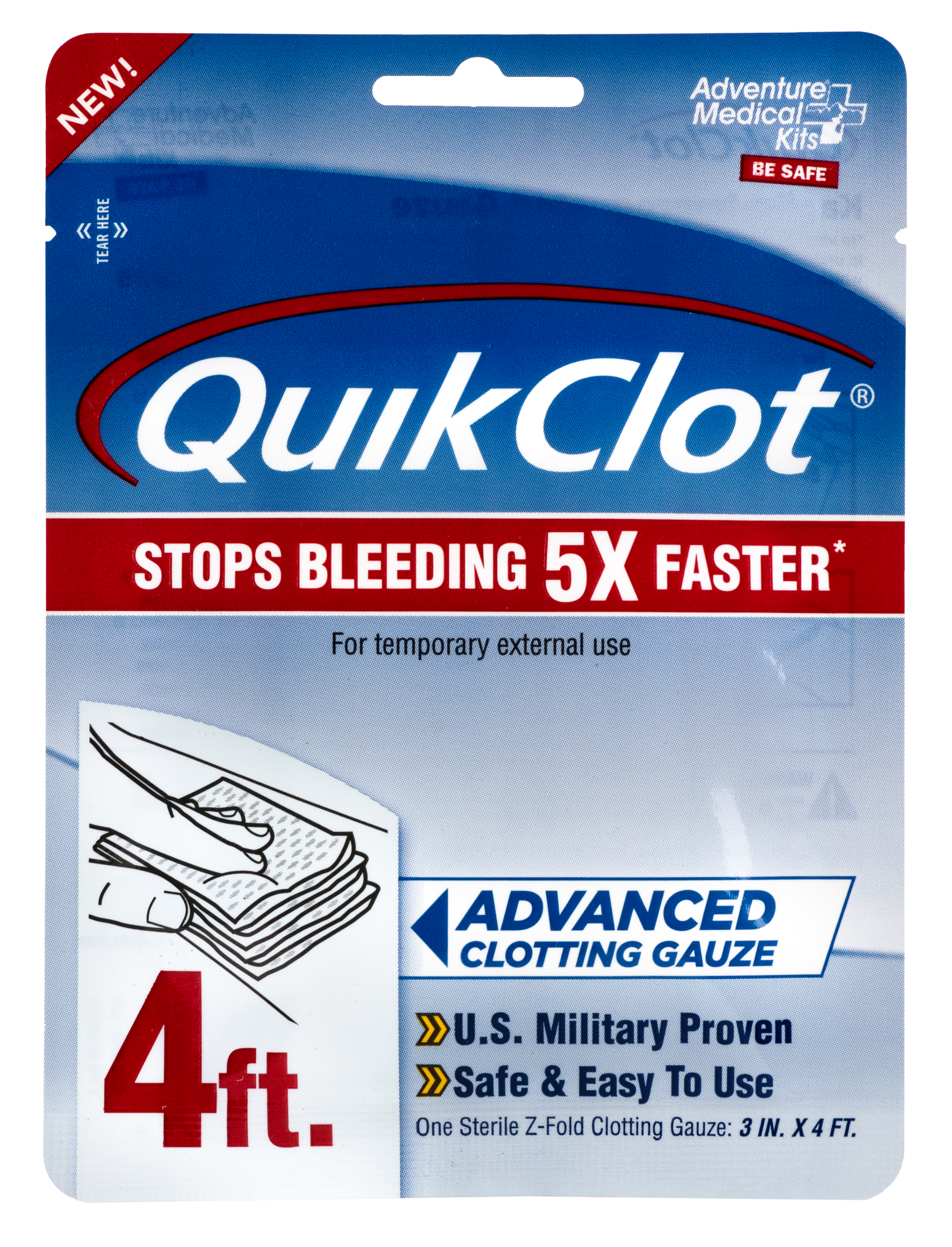 With quikclot advanced clotting gauze, you have the power to stop bleeding in the palm of your hand.Quikclot can be depended on to save time when every second counts.The hemostatic gauze works on contact to stop bleeding by accelerating your body's natural clotting process, clotting blood five times faster.Quikclot gauze is impregnated with kaolin, a naturally-occurring mineral proven to be effective as a hemostatic agent.Inorganic and inert, kaolin is non-allergenic, making it safe and effective to use.This extremely absorbent 3"x 48" gauze is flexible and pliable, easily contouring to wounds.Make quikclot a part of your trauma pack or first aid kit so you're prepared when emergencies occur.