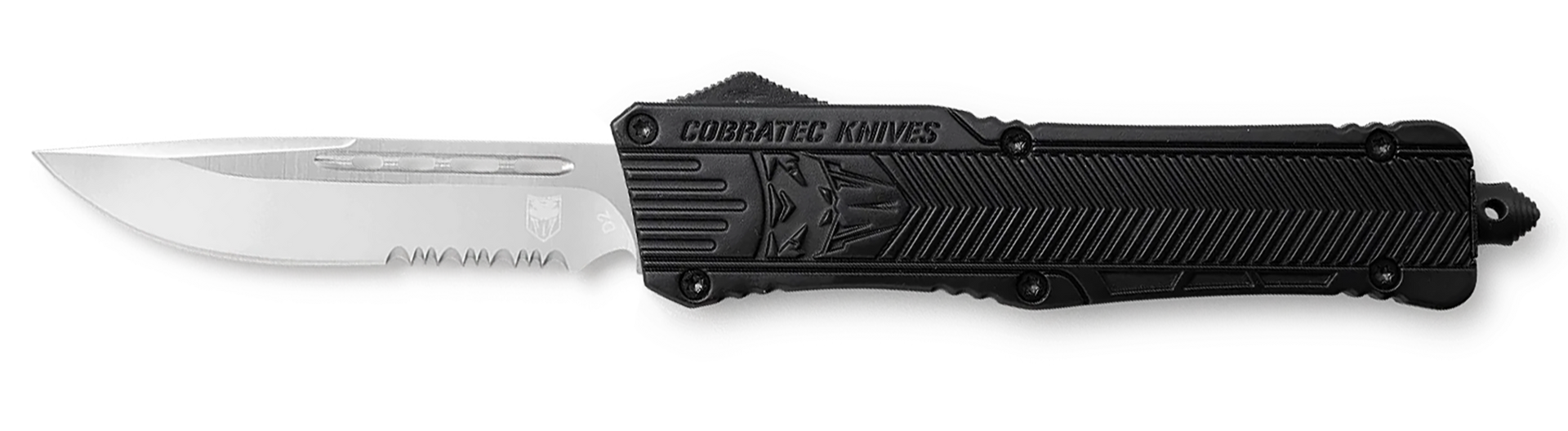 The cobratec ctk-1 is designed for use with any task.Featuring aluminum alloy handles, d2 steel blade and otf (out the front) opening design it allows for rapid deployment with minimal effort.The otf knife features a pocket clip, a glass breaker for emergencies and includes a nylon sheath.