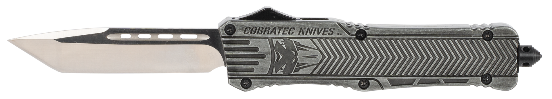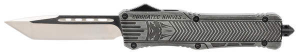 The cobratec ctk-1 is designed for use with any task.Featuring aluminum alloy handles, d2 steel blade and otf (out the front) opening design it allows for rapid deployment with minimal effort.The otf knife features a pocket clip, a glass breaker for emergencies and includes a nylon sheath.Closed Length: 5.75"Blade Type: TantoBlade Length: 3.75"Oal: 9.50"Blade Material: D2 SteelHandle Description: StonewashedWeight: 9 ozSheath: NylonEdge Type: PlainOpen Type:...View more