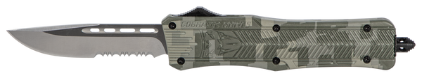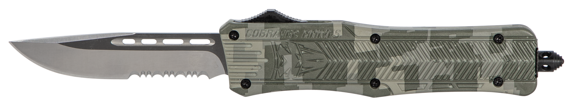 The cobratec ctk-1 is designed for use with any task.Featuring an aluminum alloy handle and an otf (out the front) opening design it allows for rapid deployment with minimal effort.Total length with glass breaker is 8".