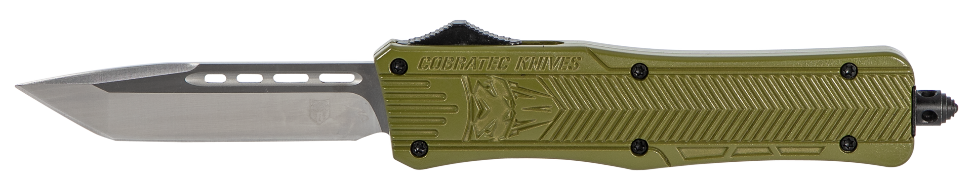 The cobratec ctk-1 is designed for use with any task.Featuring an aluminum alloy handle and an otf (out the front) opening design it allows for rapid deployment with minimal effort.Total length with glass breaker is 8".