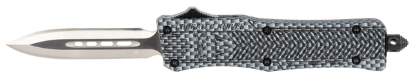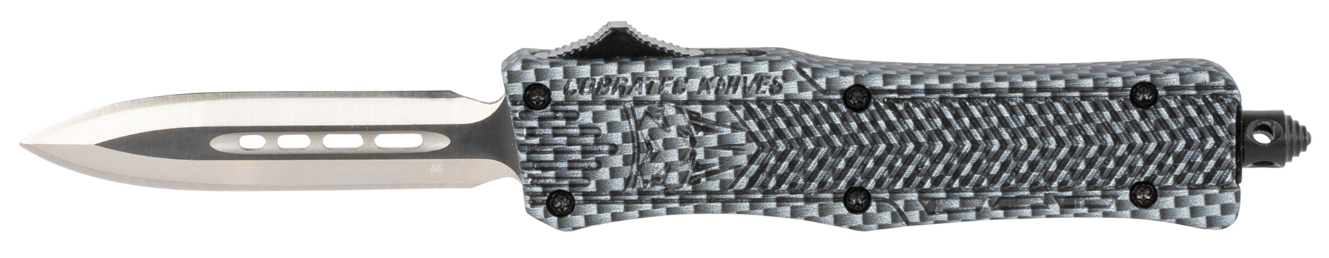 The cobratec ctk-1 dagger is designed for use with any task.Featuring aluminum alloy handles and otf (out the front) opening design it allows for rapid deployment with minimal effort.The 4.25" closed length is ideal for everyday carry and the glass breaker provides a survival necessity.Closed Length: 4.25"Blade Type: DaggerBlade Length: 2.75"Oal: 7"Blade Material: D2 SteelHandle Description: Carbon FiberWeight: 4.50 ozSheath: NylonEdge Type: PlainOpen Type: TriggerNo....View more