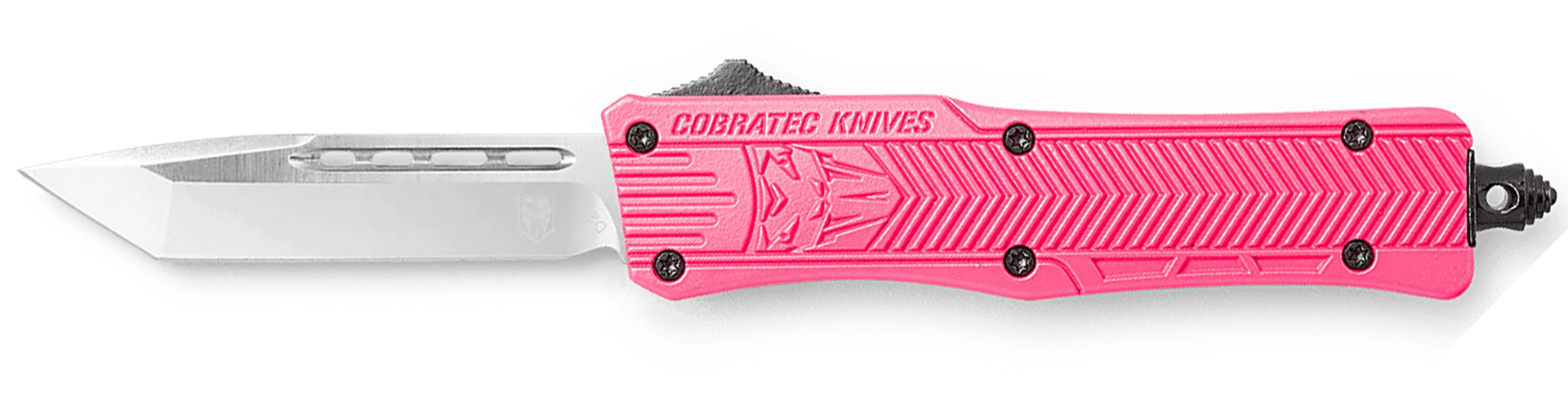 The cobratec ctk-1 is designed for use with any task.Featuring an aluminum alloy handle and an otf (out the front) opening design it allows for rapid deployment with minimal effort.Total length with glass breaker is 7".Closed Length: 4.25"Blade Type: TantoBlade Length: 2.75"Oal: 7"Blade Material: D2 SteelHandle Description: PinkWeight: 4.50 ozSheath: NylonEdge Type: PlainOpen Type: TriggerNo. Of Blades: 1View more
