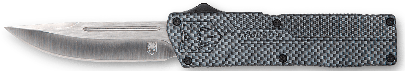 Cobratec's lightweight otf (out the front) knife has a great feel and excellent action.The knife includes a pocket clip and a nylon sheath.It features a 3.25" d2 steel blade and 4.5" high-grade aluminum alloy handle.Closed Length: 4.50"Blade Type: Drop PointBlade Length: 3.25"Oal: 7.75"Blade Material: D2 SteelHandle Description: Carbon FiberWeight: 4.20 ozSheath: NylonEdge Type: PlainOpen Type: Side ButtonNo. Of Blades: 1View more