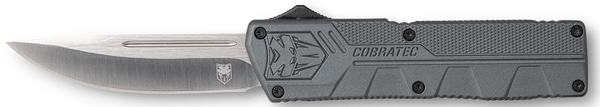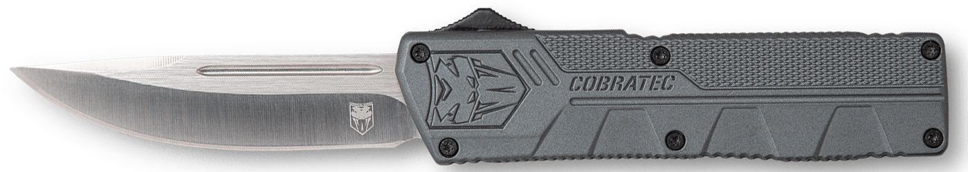 Cobratec's lightweight otf (out the front) knife has a great feel and excellent action.The knife includes a pocket clip and a nylon sheath.It features a 3.25" d2 steel blade and 4.5" high-grade aluminum alloy handle.Closed Length: 4.50"Blade Type: Drop PointBlade Length: 3.25"Oal: 7.75"Blade Material: D2 SteelHandle Description: GrayWeight: 4.20 ozSheath: NylonEdge Type: PlainOpen Type: Side ButtonNo. Of Blades: 1View more