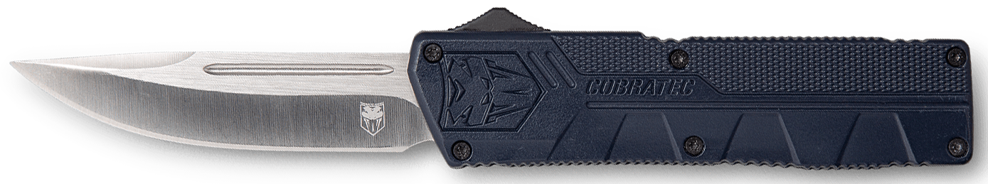 Cobratec's lightweight otf (out the front) knife has a great feel and excellent action.The knife includes a pocket clip and a nylon sheath.It features a 3.25" d2 steel blade and 4.5" high-grade aluminum alloy handle.Closed Length: 4.50"Blade Type: Drop PointBlade Length: 3.25"Oal: 7.75"Blade Material: D2 SteelHandle Description: NYPD BlueWeight: 4.20 ozSheath: NylonEdge Type: PlainOpen Type: Side ButtonNo. Of Blades: 1View more