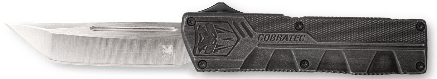 Cobratec's lightweight otf (out the front) knife has a great feel and excellent action.The knife includes a pocket clip and a nylon sheath.It features a 3.25" d2 steel blade and 4.5" high-grade aluminum alloy handle.