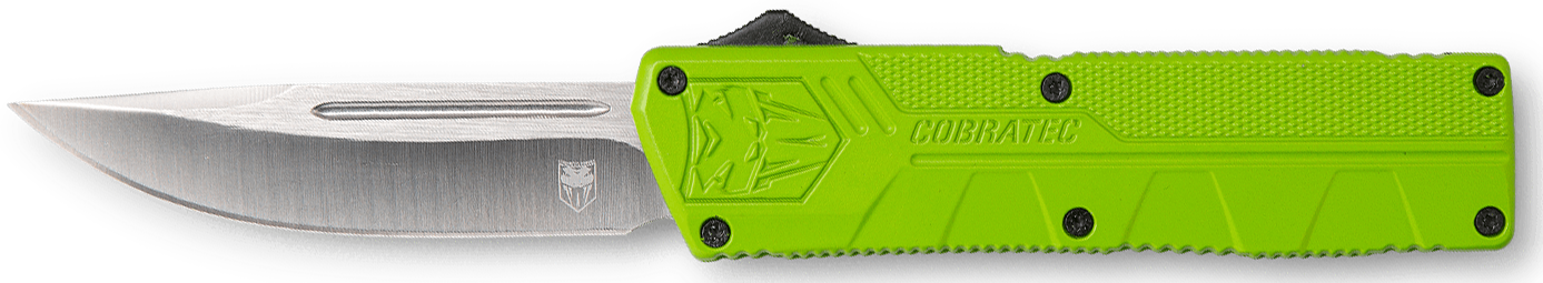 Cobratec's lightweight otf (out the front) knife has a great feel and excellent action.The knife includes a pocket clip and a nylon sheath.It features a 3.25" d2 steel blade and 4.5" high-grade aluminum alloy handle.