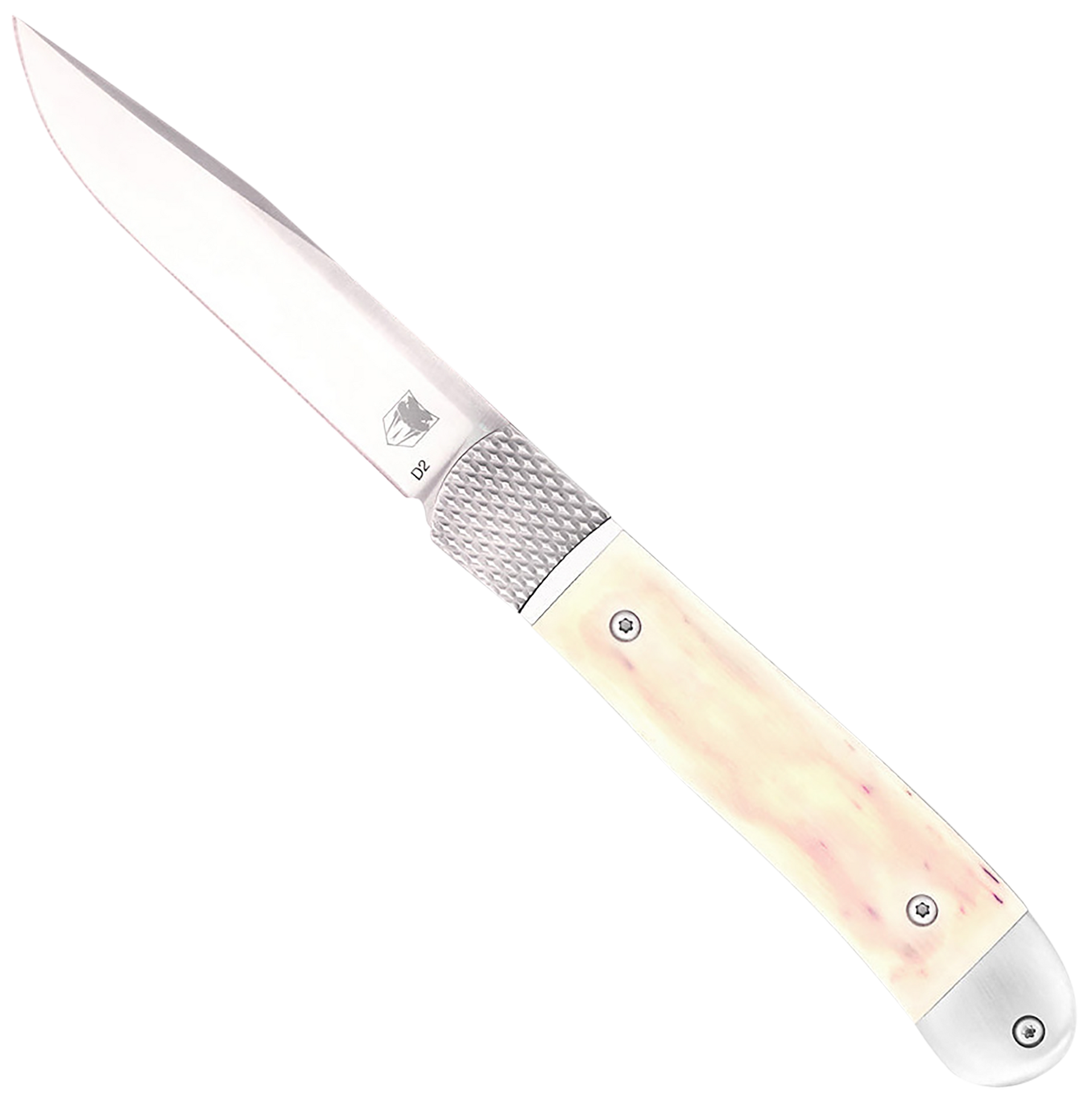 The cobratec trapper hidden release automatic handle is comprised of textured bone with steel bolsters and comes with a drop point d2 steel blade.Push the bolster up to deploy the blade and push the bolster up again to release the lock.