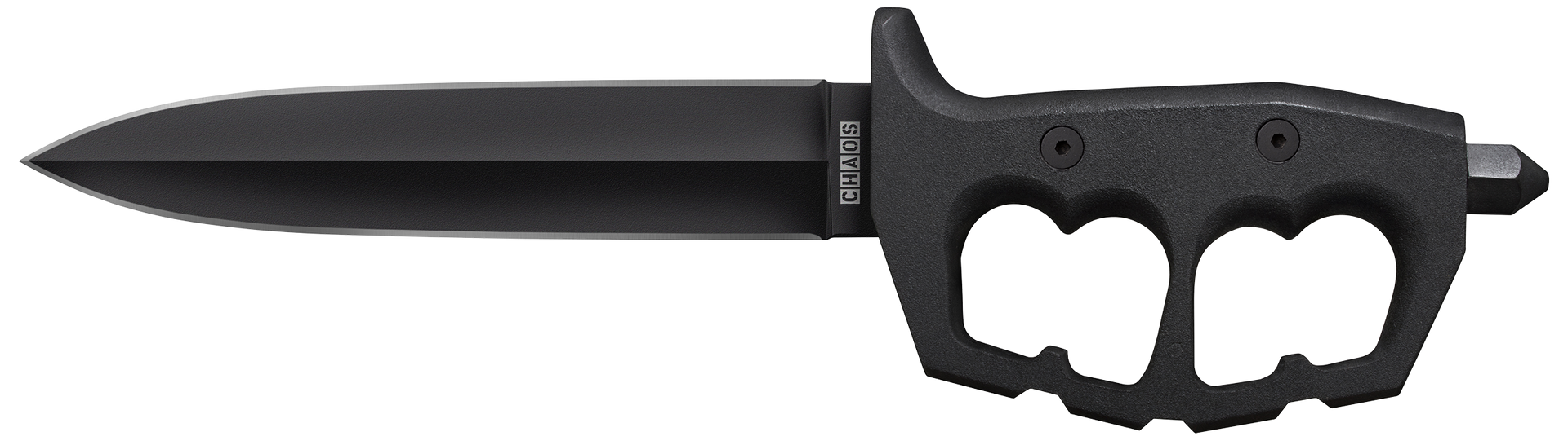 Our chaos series fixed blades are equipped with unique "d" ring guards made from reinforced 6061 aluminum, allowing for an incredibly secure and comfortable grip while protecting the hand both from incoming attack and damage while striking or cutting an opponent who's covered in body armor, ammo, flashlights, magazines and gear.The extra thick 1055 carbon steel pommels are tapered to concentrate the percussive force of a hammering strike and their full tang sk-5 high carbon steel blades are expertly heat treated for maximum performance.Includes secure-ex sheath, molle-lok and tek-lok compatible, with rugged adjustable cor-ex belt loops and retaining straps for a secure and reliable lock up when not in use.