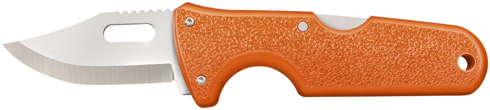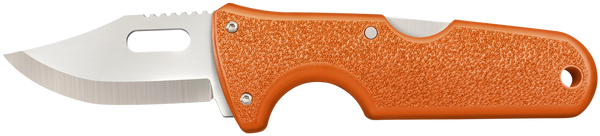The click-n-cut's popularity has made it something of an imperative to create specific variations.The new hunter's model has a blaze orange handle and comes complete with three blades designed for a hunter's needs.There is a bowie blade, for sticking and skinning, a gut hook blade for field dressing and our standard serrated utility blade for general chores.