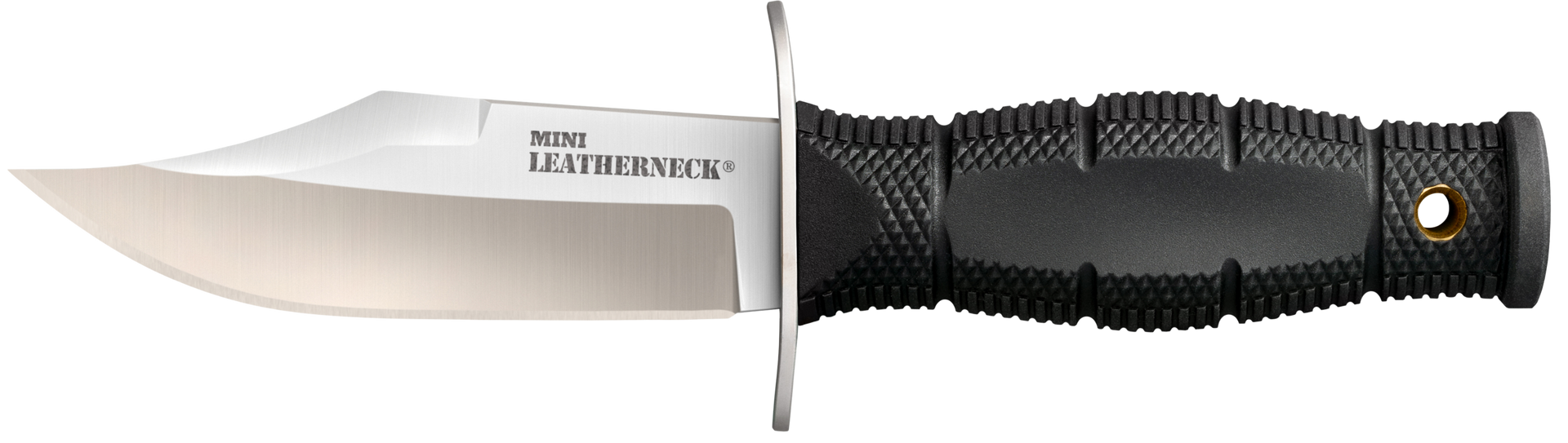 It is not the size of the dog in the fight that matters as much as the size of the fight in the dog! the mini leatherneck series embodies this saying completely.Made from 8cr13mov steel and features a stainless steel guard with broad quillons to protect your fingers.The grip is made from kray-ex and is designed to be reminiscent of our larger leatherneck models.These knives come with a tough, sturdy secure-ex sheath that will accommodate a bead lanyard or a cold steel c-clip.