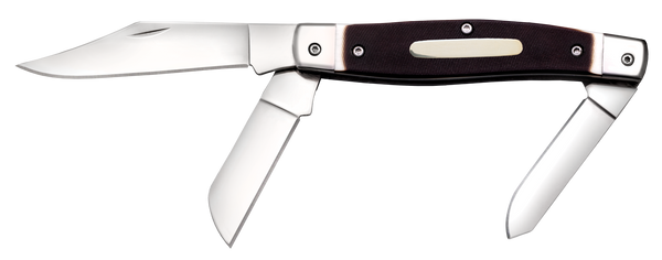 The cold steel stockman folding knife is a slight larger and more rugged version of the gentleman's stockman.The stockman series is our variation on the classic gentlemans slip joint knife.It features handles made from authentic bone and is highlighted with polished metal bolsters.The rugged handles are substantially sized for hard work, even with gloved hands.It is constructed in a traditional jack knife pattern, with three polished 8cr13mov stainless steel blades, a clip point blade for piercing and cutting, a spey blade for skinning and gutting and a sheeps foot blade to avoid piercing during any slicing work.
