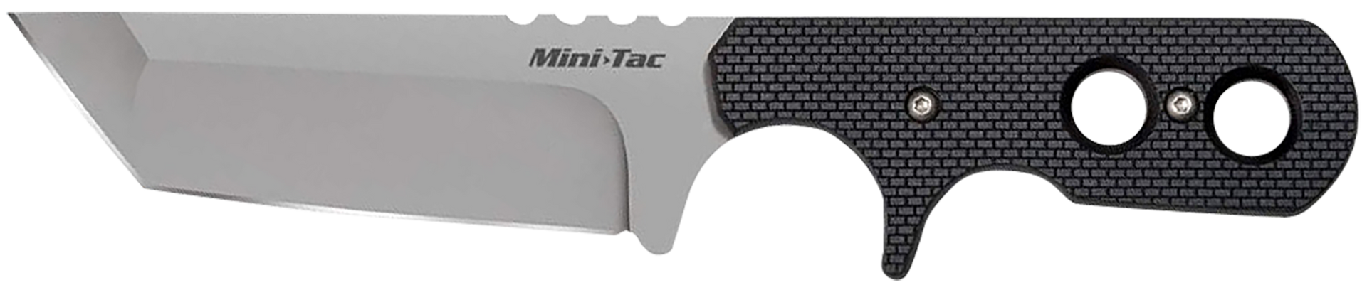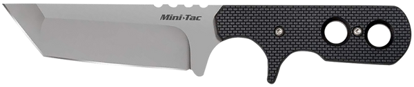 Cold steel's generation of mini tac neck knives can be comfortably worn 24 hours a day.With their sturdy bead chain lanyards and their rugged secure ex sheaths they can be worn outside clothing and perform as a handy utility or rescue knife.They can be used for camping or hiking as they can easily be tied or taped anywhere from a backpack to a fanny pack.Fashioned from aus 8a stainless steel and reflecting state of the art heat treatment they are honed to a razor edge and exhibit incredible toughness for such a small knife, due in part to their full tang construction.