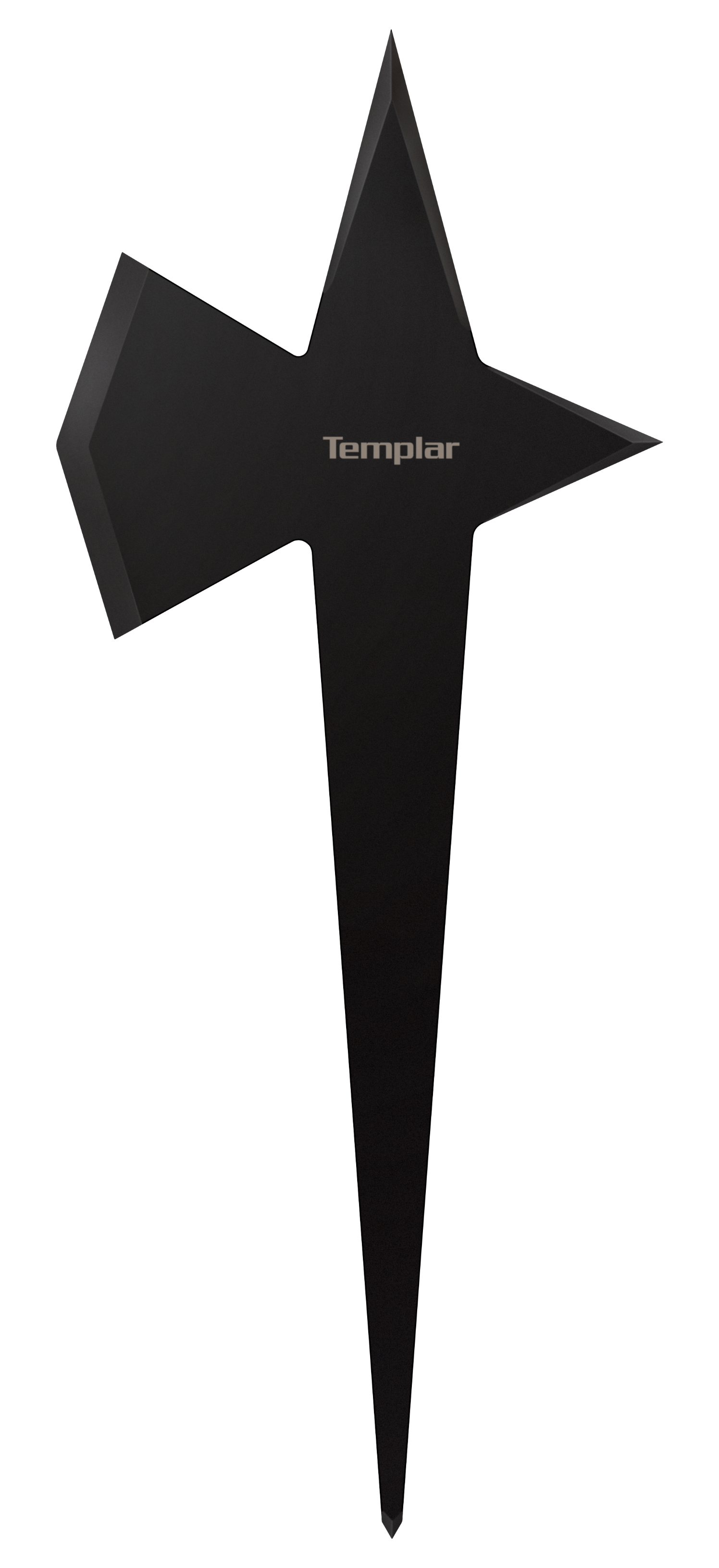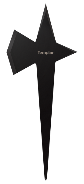 The cold steel templar is a specialized throwing tool made for modern sport or competition throwers.Made of one solid piece of tough spring tempered carbon steel, the templar is fun to throw and easy to use.When it comes to "sticking" potential, it's the next best thing to a shuriken or throwing star, landing with a satisfying "thunk".With an axe-style head, top and back spikes and a tapered spiked handle, it hits hard at almost any distance and rotation and thanks to its head-heavy balance it is capable of being thrown even over extended distances.