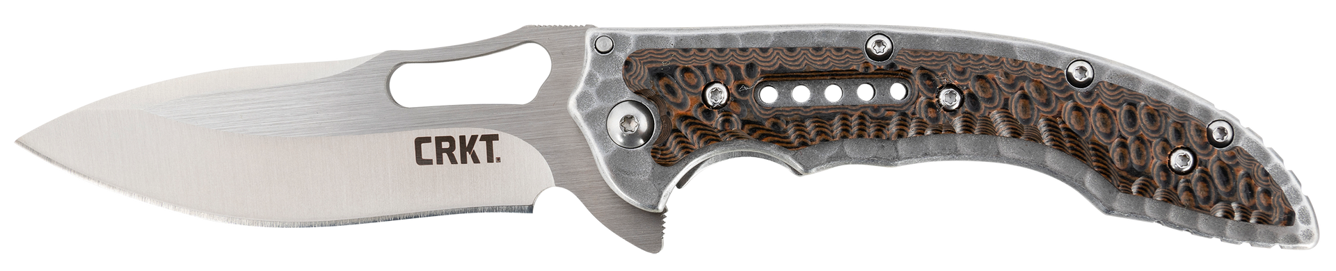 The fossil combines the best from designer flavio ikoma of presidente prudente, brazil.The knife has a distinctive, prehistoric look.But it goes through jobs like a t-rex on stainless steel steroids courtesy of a drop point blade style that makes virtually anything in its path history.It features the ikbs ball bearing pivot system, combined with an opening flipper the result is blade deployment that is smooth and fast.A thumb hole cutout in the blade gives you a second option for opening the knife.The flipper also turns into a handsome finger guard when the blade is open.The handles are made of stainless steel with a unique hammered finish.Contoured multi-colored g10 handle overlays make it look like a gator.