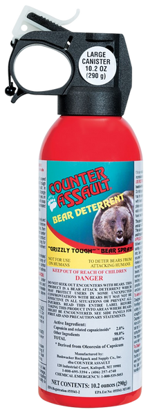 Counter assault bear deterrent pepper spray was developed, in conjunction with the university montana, as a means to protect people from bears in a non-lethal manner.Works on all bear species to deter bears from attacking humans with a 40ft spray distance at a 8 seconds spray duration.Counter assault bear deterrent is lightweight, easily carried on the belt of a hunter, fisherman or backpacker.Contains 2% capsaicin...View more