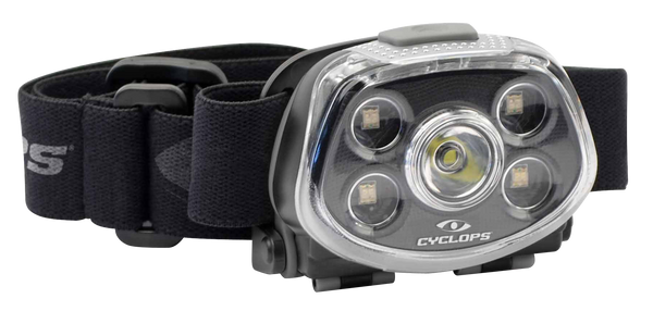 Cyclops xp force headlamp is small, light and compact.It features an ultra bright cree xt-e s3 led with five lighting modes: high 350 lumens, low 15 lumens, red 3.2 lumens, green 5.5 lumens and blinking.The headlamp is water resistant.Includes three aaa batteries.Type: HeadlampOutput: 15/350 LumensBulb Type: Cree LEDBattery Size: AAAProofs: Water ResistantColor: BlackFilter Color: Red/Green/WhiteView more