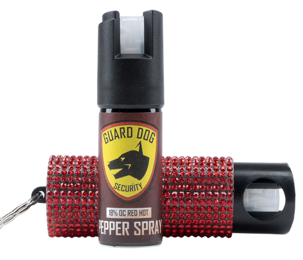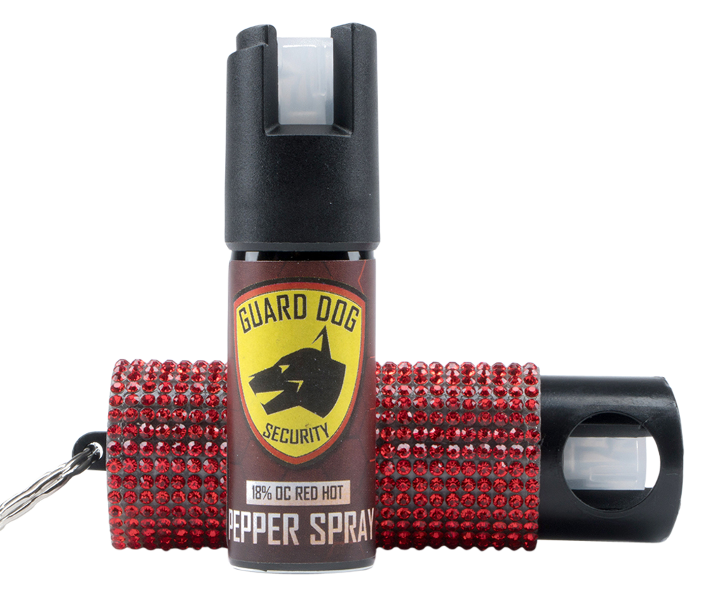 Carry red hot protection in style, confidence and convenience with the bling it on pepper spray from guard dog security.Bling it on is a non-lethal pepper spray that easily clips to a key ring, purse or backpack and it is an invaluable instrument of self-defense.Guard dog security's red pepper spray is ready for action in the event you should need it most.With maximum distance defense, simply point and depress the glow-in-the-dark actuator to cause immobilizing irritation to the eyes, skin and throat of your attacker.The invisible uv dye verifies the assailant.Bling it on is a fashionable self-defense choice, with safety features that prevent accidental discharge and wind blowback.With the guard dog security industry-exclusive protected 4 life program, you receive free lifetime pepper spray replacement in the event of use.