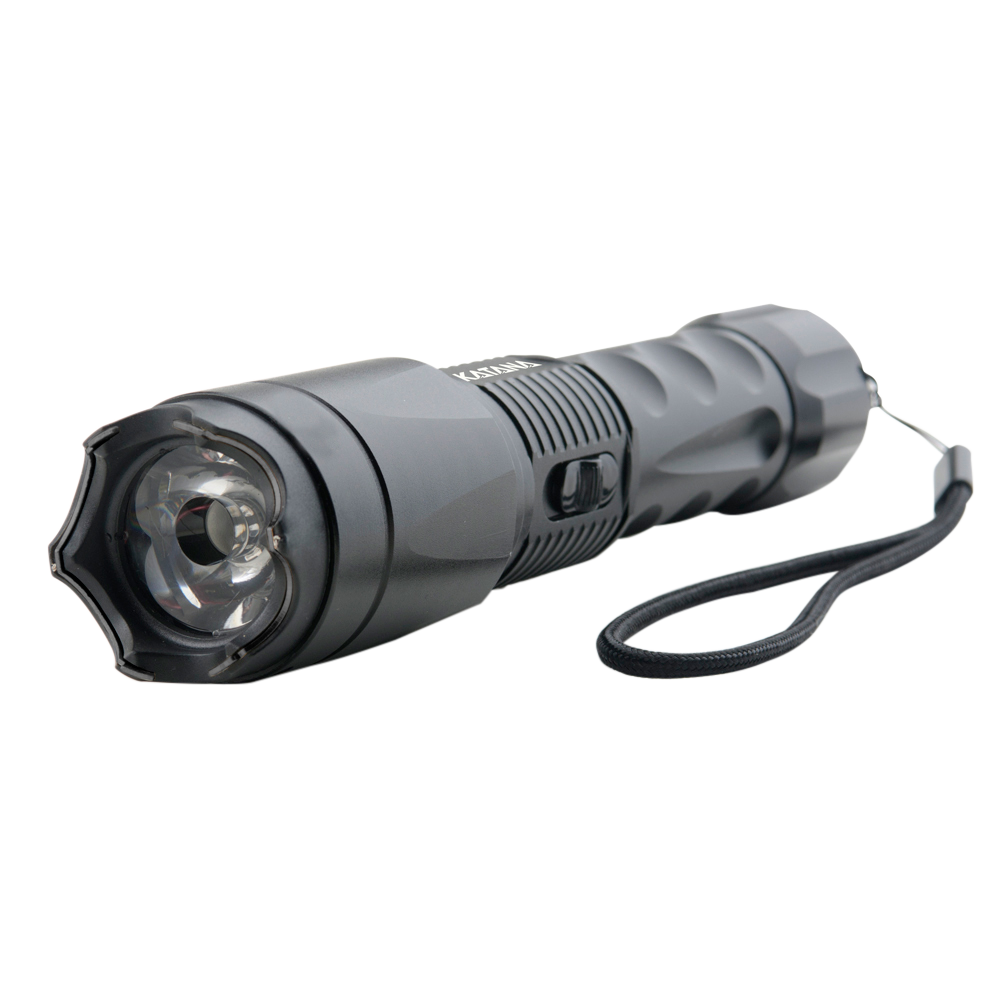 The guard dog katana presents a premier self defense and survival option, one never before seen on the market.For the first time ever, a tactical flashlight and concealed stun gun with a steel-point tail cap for self defense or glass breaking.Made with aircraft grade aluminum, the katana is durable and shatterproof to withstand high pressure situations.Replace your daily flashlight with the guard dog katana, a 400 lumen tactical flashlight, concealed stun gun and steel-point tail cap.