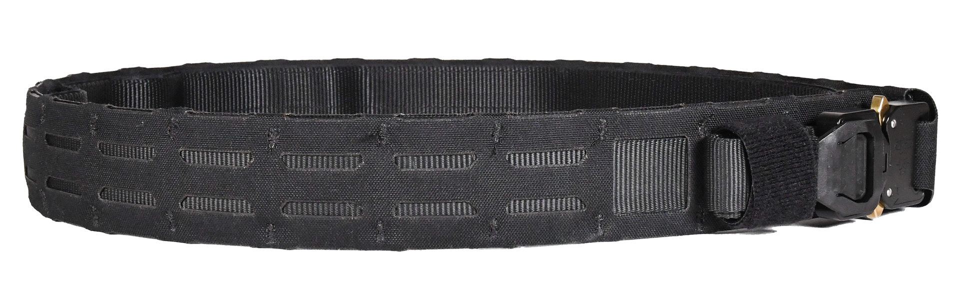 The operator belt features cobra buckle with snakebite fitting to secure webbing tail and prevent possible snagging; 1" mil-spec 5625 tubular nylon webbing with water-repellant coating to withstand the elements; thermoplastic core provides long-term rigidity without adding weight; laser-cut molle slits (abbreviated 3-row pattern) allow pouches to mount with molle, belt loops or onewrap straps and comprised of an inner and outer belt connected by hook and loop fastener.Compatible with virtually all holster and pouch mounting systems.