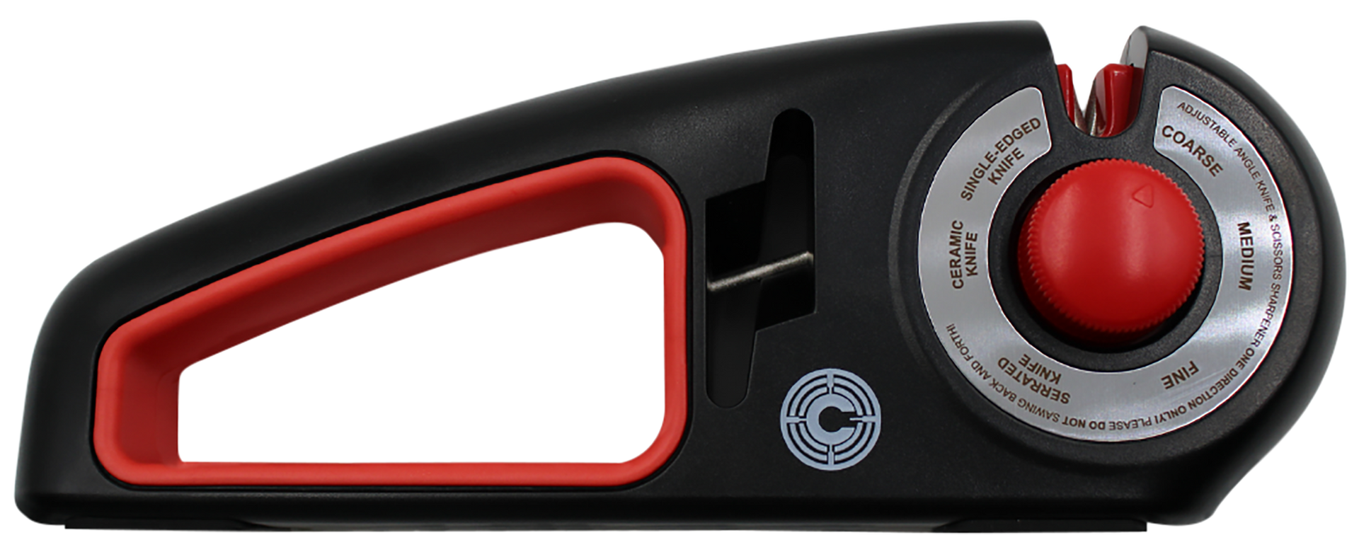 Adjustable knife sharpener cbg-ks-1 is a reliable and efficient tool for keeping your kitchen knives in pristine condition.Constructed with a durable abs plastic body and featuring tpe, ceramic carbide and silicone components, this sharpener is built to last and provides a consistent, even sharpening each time.