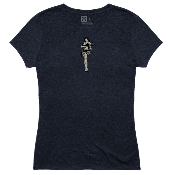 The magpul hulua womens t-shirt is made of 25% cotton/50% polyester/25% rayon with a v-neck and set-in sleeves.It features a tag-less interior neck label, shoulder to shoulder neck tape, and double-needle stitching.Printed in the usa.