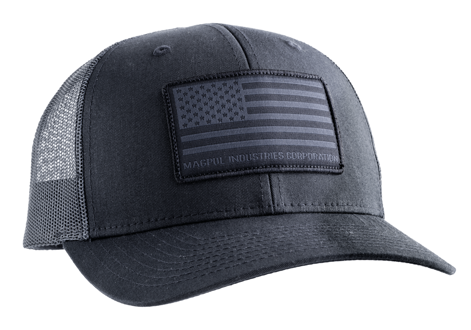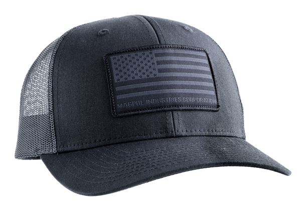 The magpul standard patch trucker is a structured, six-panel trucker-style hat that features a woven magpul american flag patch located front and center of the hat.It's got a mesh back and a mid-crown design, so the brim rests just above the brow and stays comfortable all day.There's no button on the top of the hat, making it great for use with over-the-head hearing protection.Features mesh back and eyelet vents for breathability; adjustable snapback closure; interior custom magpul branding and a woven patch at center front.60% cotton/40% polyester.