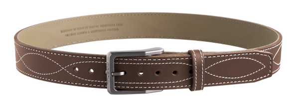 The tejas gun belt "el cibolo" is an american-made gun belt ready for everyday wear.This 3-ply belt is crafted from a solid, one-piece strap of 100% american bull hide, which is then backed by a supporting, flexible polymer reinforcement.The decorative stitching throughout the length of the belt, adding style and detail to an already hard-wearing belt, measures 1.50" wide and 1/4" thick, so it will fit most belt loops and holsters comfortably.Eight holes provide precise 3/4" spacing for a wide adjustment range.The belt includes an easily removable buckle, engineered with a sleek profile design that sits flat against the waist and helps reduce printing when you're carrying.