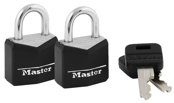 The master lock 121t covered solid body padlocks feature a 3/4"(19mm) wide black vinyl covered body for scratch and corrosion resistance.The 5/32" (4mm) diameter shackle is 7/16"(11mm) long and made of steel, offering resistance to cutting and sawing.Features 3-pin cylinder, matching colored key head for added convenience.Keyed alike - same key opens both locks.Sold in package of2.Type: LockModel Or Style: PadlockColor: Keyed AlikeSize: .75" WMaterial:...View more