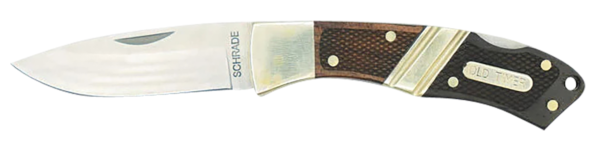 The schrade old timer mountain beaver jr.Lockback folder is a traditional hunting knife.The drop point, mirror polished stainless steel blade features a nail nick opening.The handle is made from wood with nickel bolsters.Includes a leather belt sheath.Blade Type: Drop PointBlade Length: 2.50"Oal: 6.10"Blade Material: 9Cr18MoV SSHandle Description: EbonyWeight: 2.80 ozSheath: LeatherEdge Type: PlainOpen Type: Nail NickView more