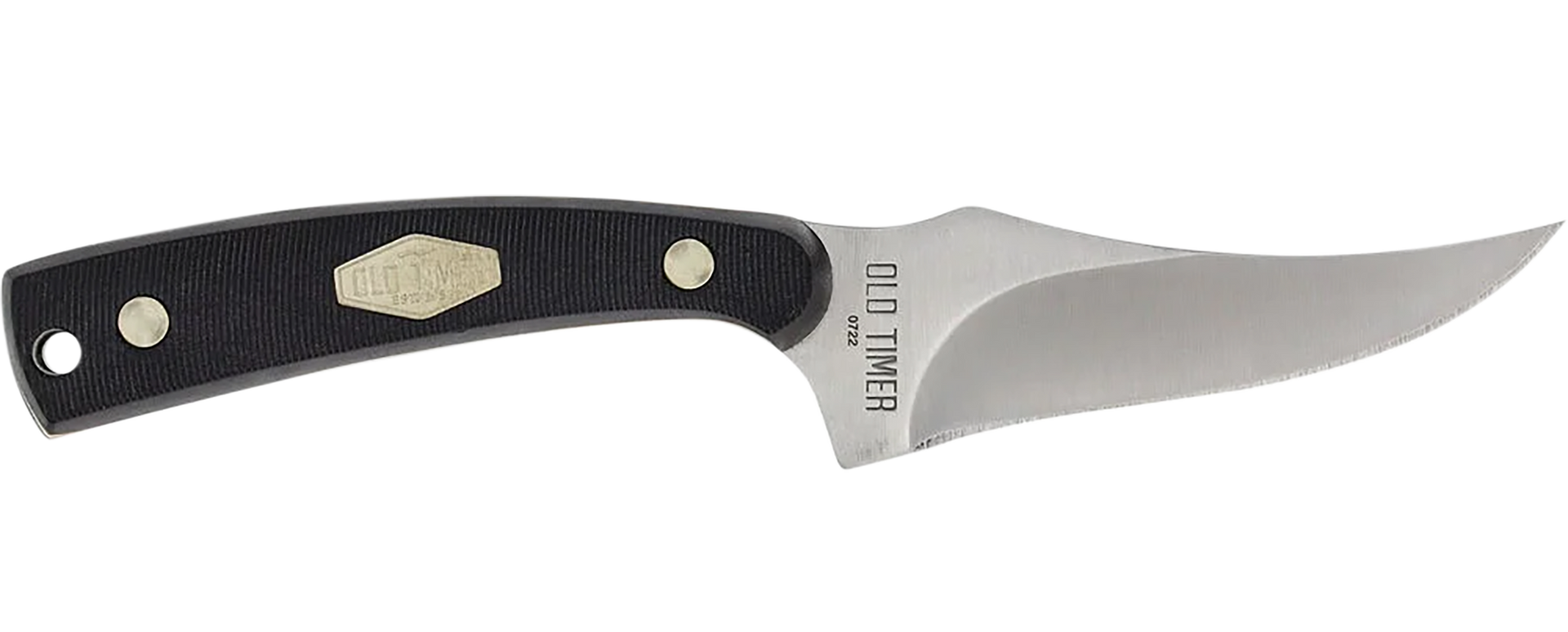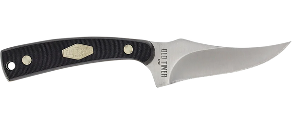 The sharpfinger knife is a classic compact fixed blade hunter that features a 3.3 inch clip point skinner fixed blade made of stainless steel.The sharpfinger has full tang construction for strength; sawcut brown delrin scales, old timer shield and a lanyard hole.A brown leather sheath is included.The old timer sharpfinger knife has an overall length of 7.1 inches, and it weighs 2.8 ounces.