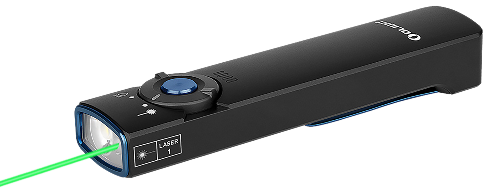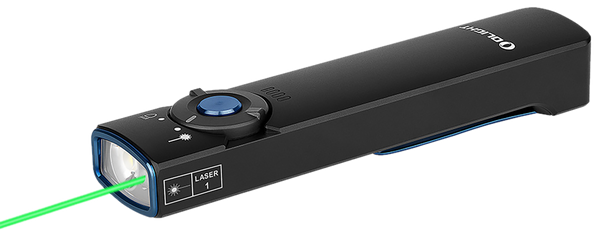 The arkfeld is a dual ight source everyday carry flashlight.The arkfeld features white light in 5 brightness levels with a max output of 1,000 lumens, and the output of green beam is 0.39mw, class 1.The light's memory function enables you to save your favorite mode so it's always ready.The clip clamps tightly onto your shirt or pockets for easy carrying.It also features a magnetic end, allowing you to simply attach it to a nearby metal surface for hands-free light.Approximately 2 hours to fully charge.