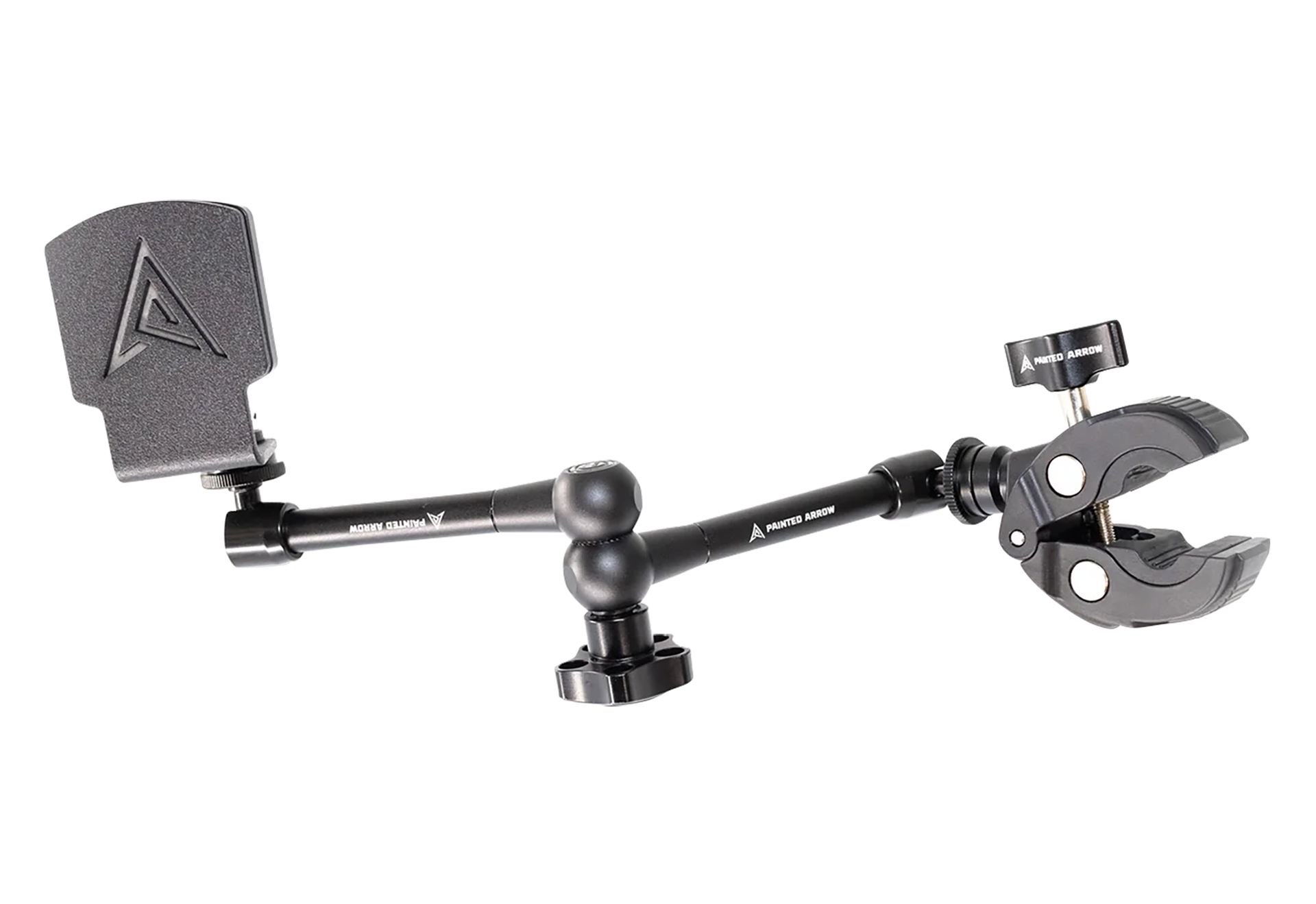 The painted arrow mag-pro arm is the preferred self-filming tool for mobile hunters looking for a do it all, ultra-lightweight, cell phone mount.This durable magnetic cell phone mount is highly adjustable and is extremely adaptable to any situation.The crab claw grip spreads open 2 inches and will clamp to anything you put between its grasp.The arm has 3 pivoting joints that are tightened and loosened by a single tensioning knob located in the center of the mount to allow any angle to be captured