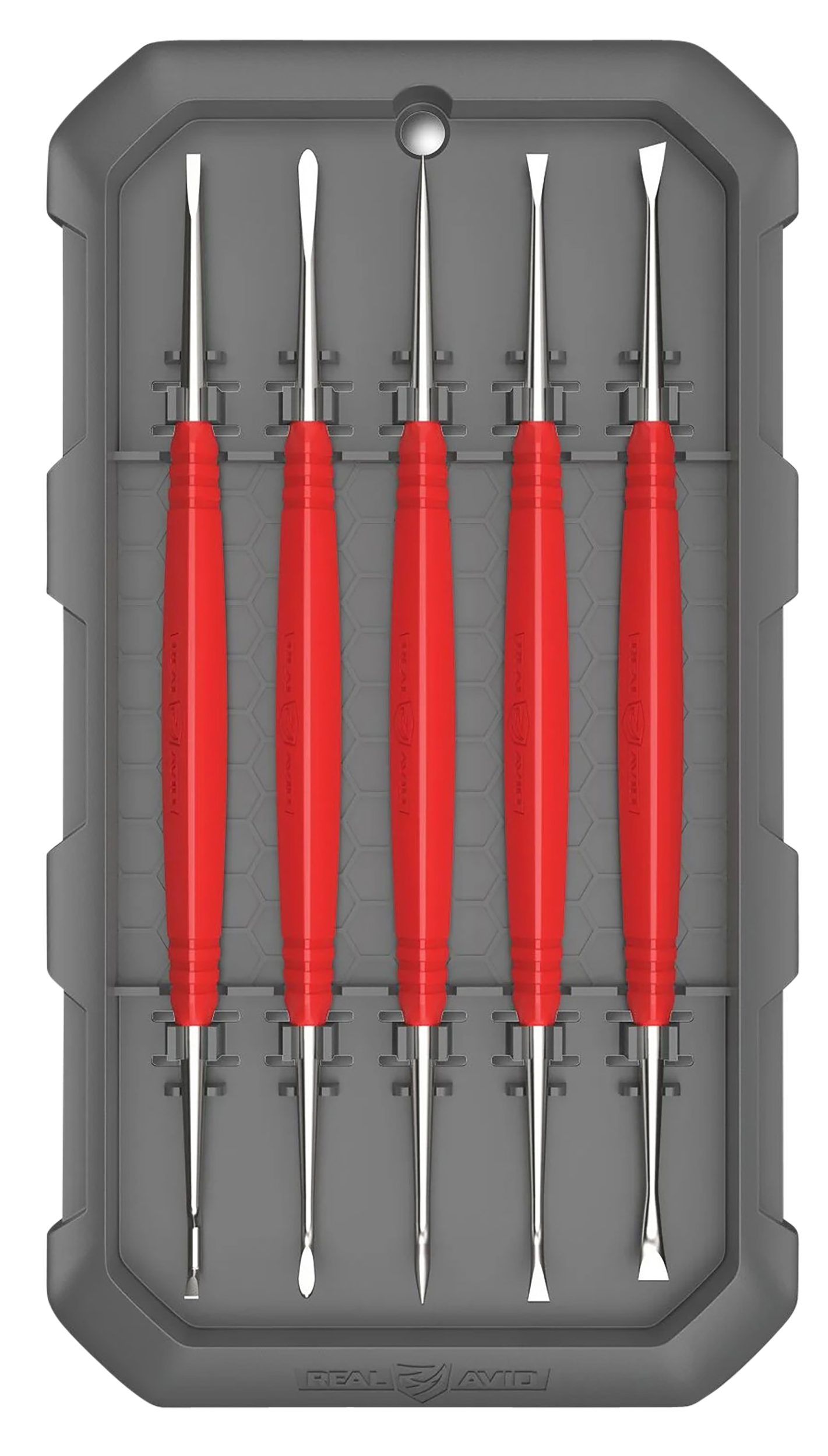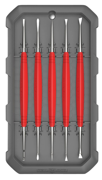 One piece 420 steel picks to expertly clean hard to reach places on firearms.Also works great on suppressors.One piece construction for durability and superior function.Ergonomic over molded handles mean comfort while cleaning.Comes in 10 different head configurations for those hard to get to areas, including rounded picks for guiding patches.Picks snap into a handy storage case is peggable for convenienceHandle Description: RedCase: YesView more