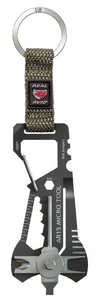 The ar15 micro tool is a compact, function-packed tool that fits in the palm of your hand.This mirco tool is constructed of stainless steel and has a key ring with strap, bolt tail scraper, firing pin scrapers, 3/8", 5/16", 1/4", 3/16" and 1/8" wrenches, 5mm bit driver, flathead screwdriver, front sight adjuster, bolt face scraper/screwdriver, bottle opener, cutter, pin punch and a carabiner.
