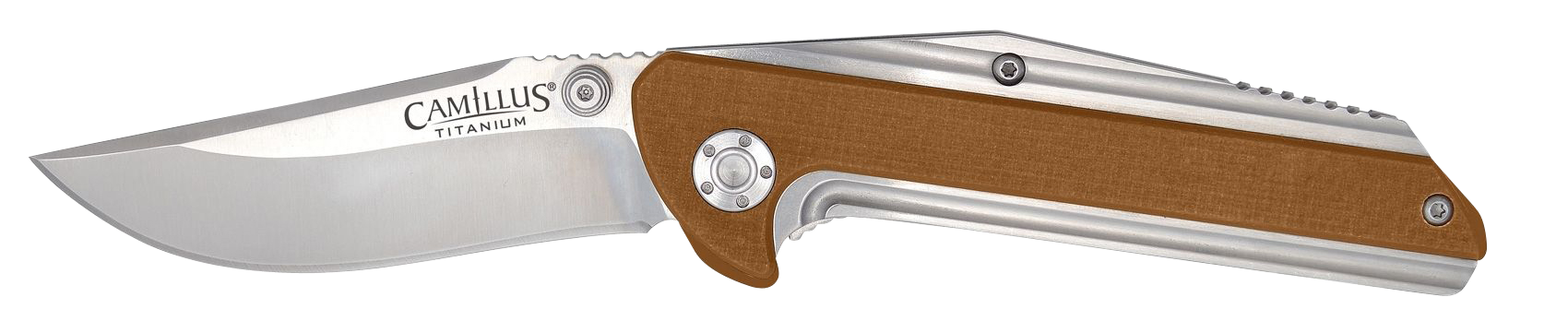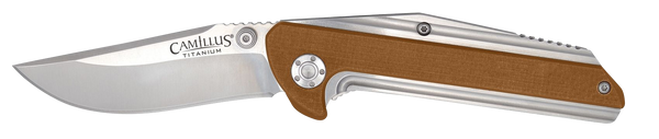 The camillus sevens is a 7 folding knife with a stainless steel and g10 handle with a aus-8 steel blade.Aus-8 ranks among the hardest, toughest and most trusted knife alloys.The steel is bonded with titanium that resists rust and corrosion and is up to 3x harder than untreated steel so the blade stays sharper, longer.The handle is made of stainless steel with a g10 accent, an extremely durable makeup of fiberglass soaked in resin, then highly compressed and baked, providing a material impervious to moisture or liquid.