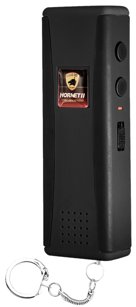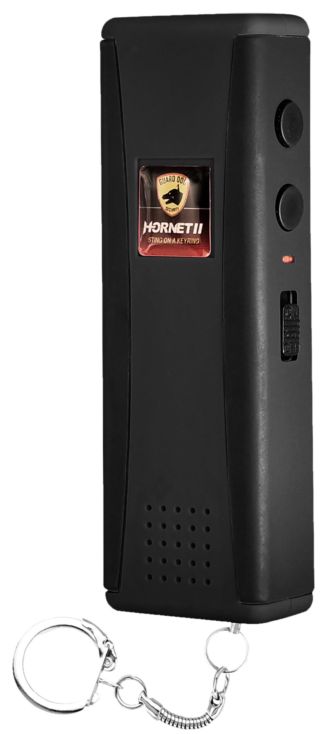 The world's smallest stun gun is back and better than ever with an added personal security siren and more streamlined design.The guard dog security hornet 2 is a 3-in-1 personal defense tool that gives you control over any threatening situation.All inclusive personal security comes together in a compact, handheld and lightweight device.Weight: 2.10 ozColor: BlackView more