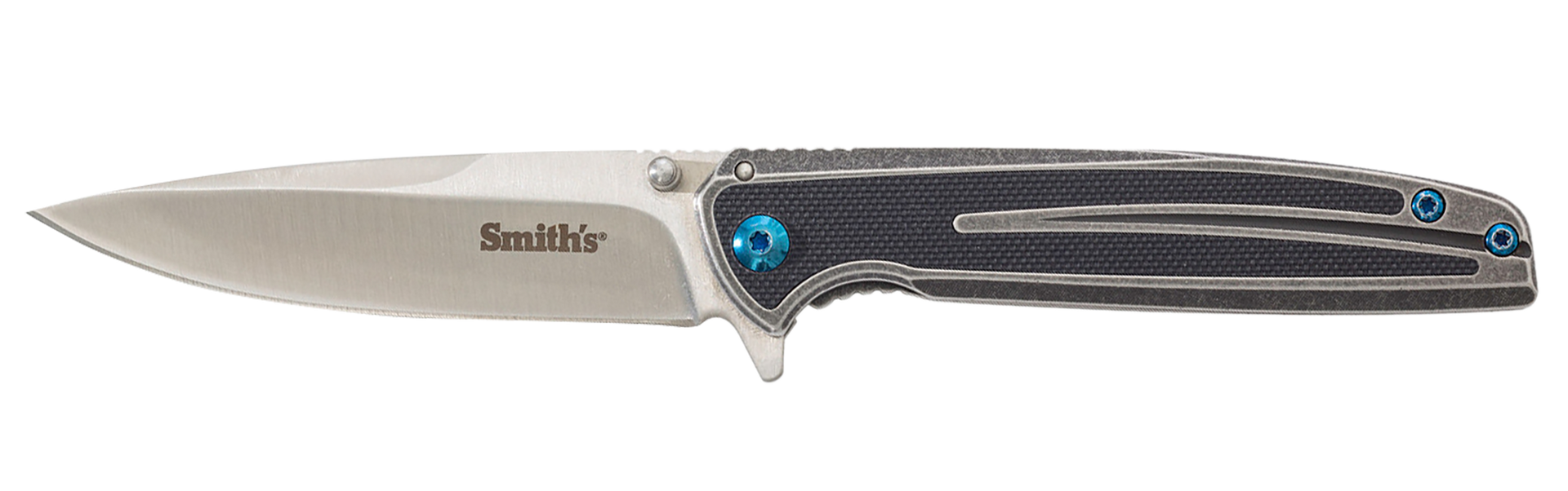 Smith's imfima gentleman's drop point blade features a bead blast finish.The razor-sharp 3.26" blade is made of precision heat treated 3cr13 series stainless steel with blade flipper and ambidextrous thumb screw for easy opening.Equipped with rugged bead blast stainless steel handles with g10 inlay.The sturdy frame lock, secures the blade open during use.The imfima includes a point-down pocket clip great for everyday carry users.