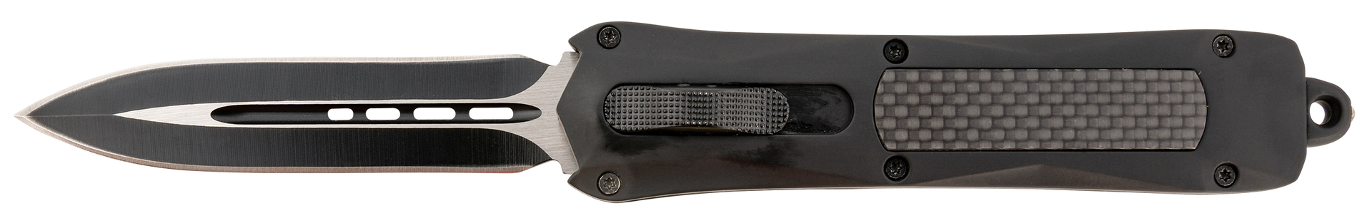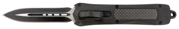Spartan dagger otf made with 440c stainless steel.Blade Type: DaggerBlade Length: 3.50"Oal: 9"Blade Material: 440C SSHandle Description: Black w/Carbon Fiber InlayWeight: 11.80 ozEdge Type: PlainView more