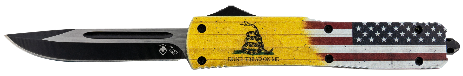 Templar Knife Don't Tread On Me, Temp Mdtom331 Slim Don't Tread On Me Drop Pt Blk