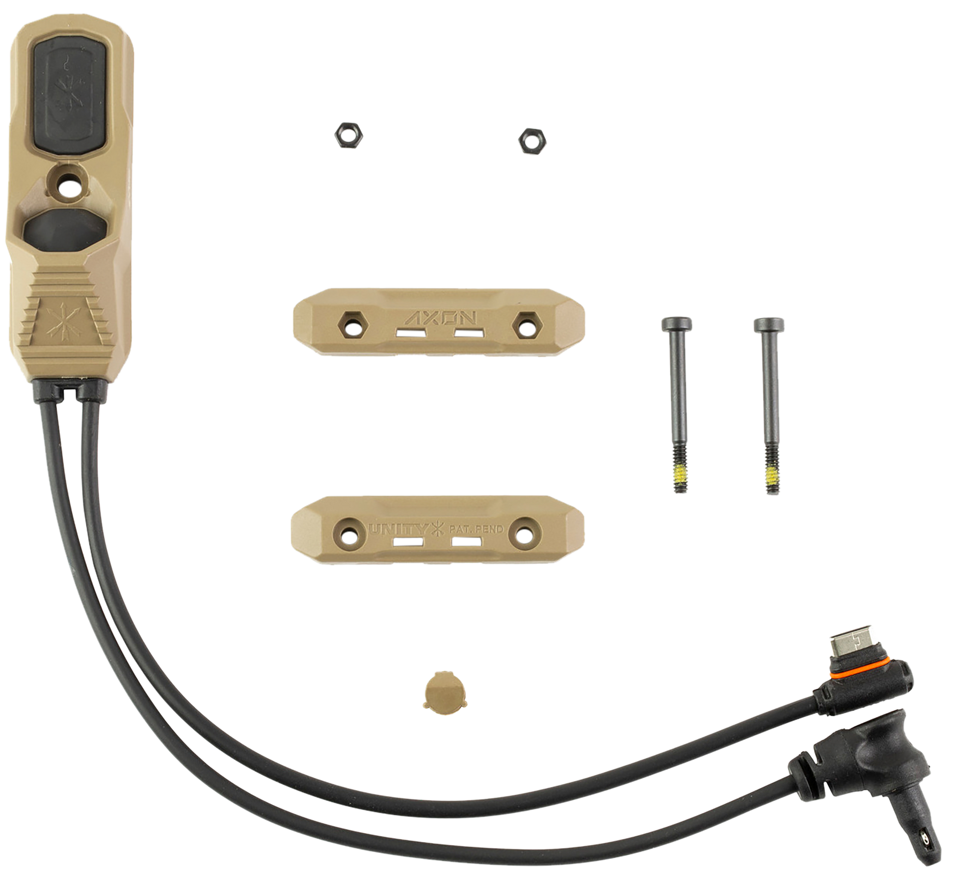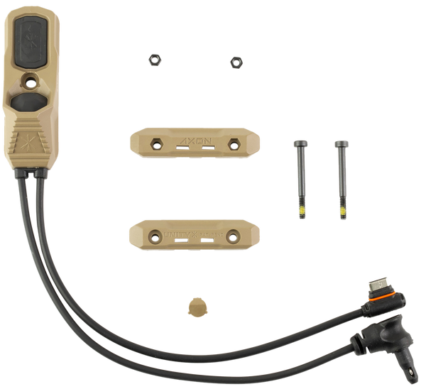 The pinnacle of remote switch design for weapon-mounted accessories, axon provides complete control of lights and lasers in a single, compact and rugged housing.Axon is the direct result of operational feedback from professional end-users on our industry-leading switch technology.Lights and lasers can be fired from individual buttons with versions available for popular issued devices.Standard axon models feature each button firing devices independently.Sync models fire the laser independently (flat button), while the angled button will fire both light and laser simultaneously.Ngal variants operate in a sync capacity, but offer a visible override feature for light and laser.Standard configuration is 7" cable length.Axon mounts directly to m1913 rail or m-lok (with optional m-lok mounting kit), while the rail clamps feature pass-throughs for zip ties.Its unique design provides tactile differentiation between the two buttons to eliminate confusion in dark, cold and high-stress situations.The light (angled) button features a switch that allows for both momentary and constant activation, while the laser (flat) button features a momentary-only button that supports the lasers double-click-for-constant-on feature.