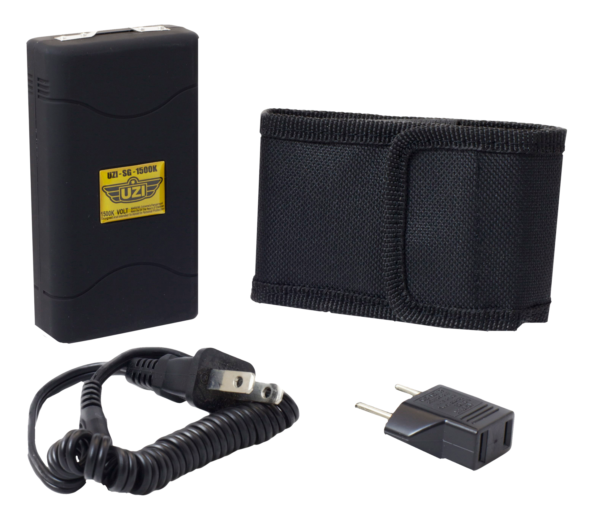 The uzi 1.5-million volt rechargeable stun device delivers a powerful shock to subdue attackers.The sound produced by the electrical current alone is enough to deter a potential threat and the sleek design is both attractive and convenient for easy carry.Features a safety switch and built-in rechargeable battery.Type: Stun GunSize: PortableWeight: 4.6 ozRange: ContactRepels: AttackerColor: BlackVolt: 1.5 MillionView more