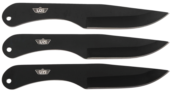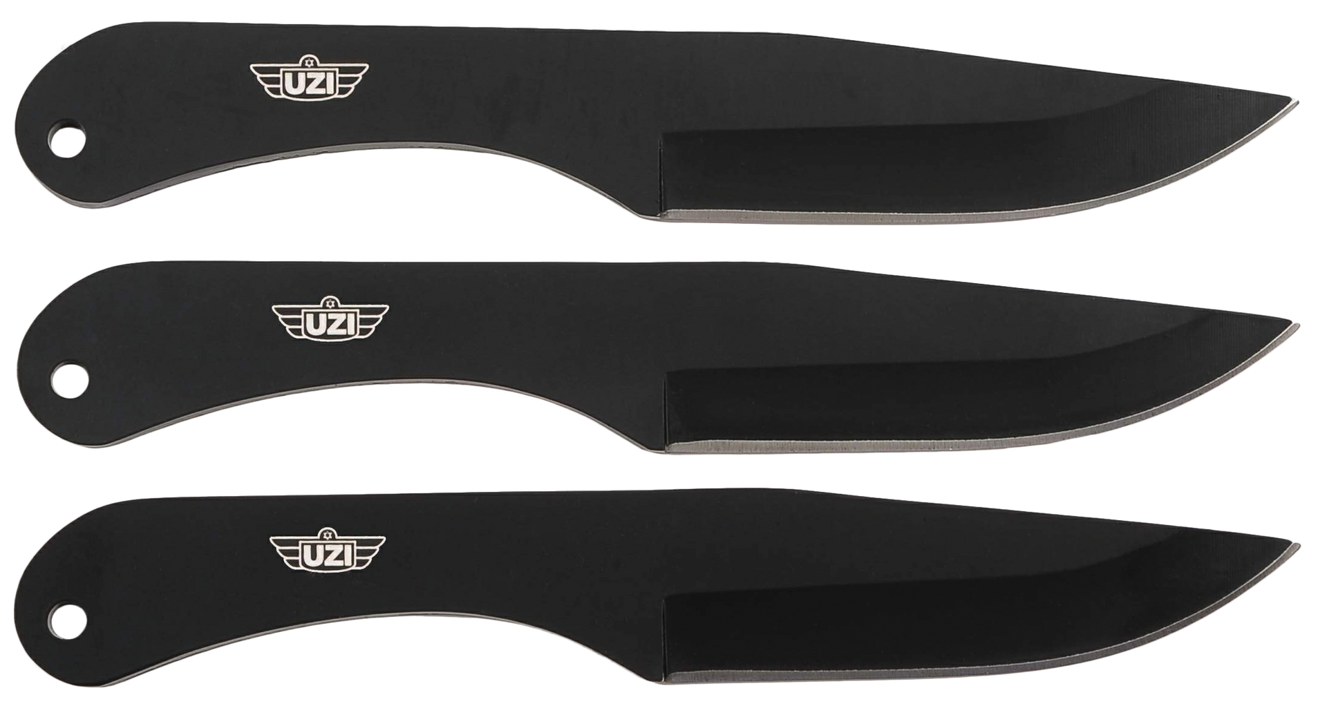 The uzi throwing knife iv features three straight edge, all black stainless steel blades and a leather pouch with a belt clip.The blades are perfectly balanced for accurate throwing.Uzi combines advanced technical concepts with innovative designs to produce products used and trusted by the army, secret service and special forces.Blade Material: Stainless SteelWeight: 5.70 ozSheath: LeatherEdge Type: PlainOpen Type: FixedNo. Of Blades: 3View more