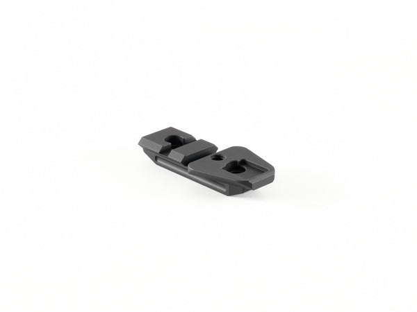 The counterpart to the dovetail side of the PICTAIL shoe is MIL-STD-1913 picatinny rail specially designed with one slot that interfaces with the ADM MQD mount. The PICTAIL and MQD mount work in tandem to achieve an adjustable footprint on any standard picatinny rail. In standalone optic mode they produce over 4.5 inches of rear offset, and when reversed for use in clip-on mode the MQD and PICTAIL shrink the rear offset to just 1.5 inches. In clip-on mode the required forward rail space is just 4 rail slots in front of a day optic making the PICTAIL and MQD the perfect combination for shorter platforms like SBRs and pistols.