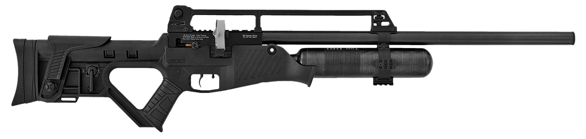 The blitz is a full-auto, pre-charged pneumatic pcp air rifle.The blitz is a select fire, semi/fully automatic pcp air rifle.Available in.22 caliber,.25 caliber, or.30 caliber that can produce up to 53 fpe and firing up to 1,150 fps.The blitz air rifle has more than enough capability to take down small to medium sized game.The blitz has a cyclical rate of 1,000 rounds per minute.With its large capacity carbon fiber air tank, it can provide over 100 shots at optimal velocity.