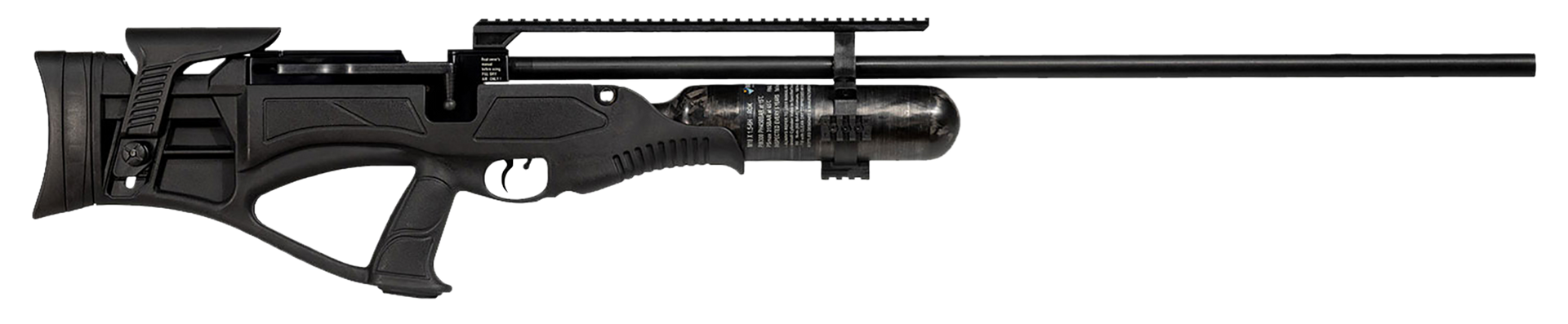 The piledriver is optimized for high-power hunting applications, it can produce over 700 fpe in the.62 caliber model.With a long, 33-inch precision rifled barrel, this bullpup design keeps the max length under 4 feet.While getting up to 6 high-powered shots at optimal velocity, there is also a max effective big game hunting range of up to 120 yards.With its single-shot, extra-large loading port, the piledriver can accommodate ammo up to 34mm in length.