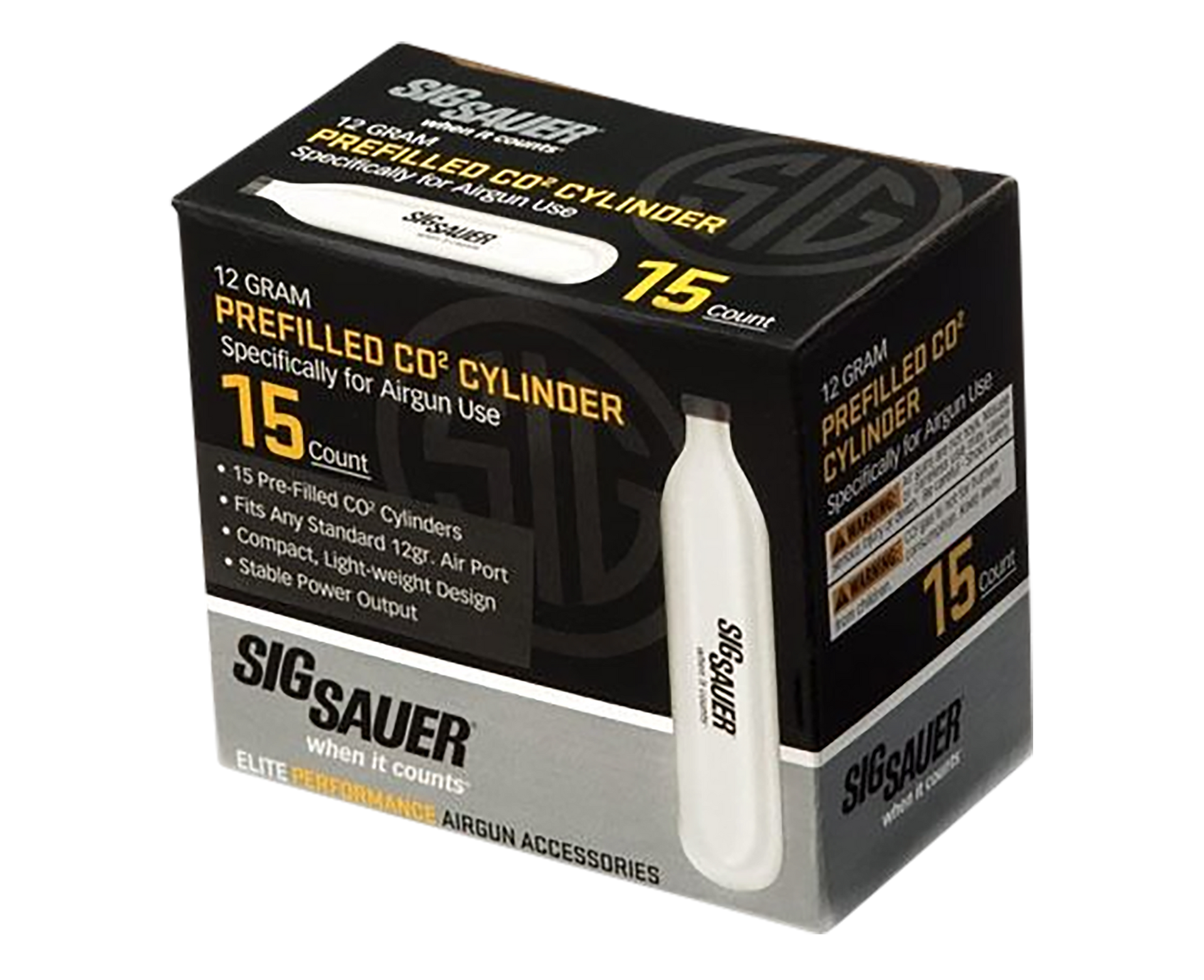 Sig sauer airguns prefilled co2 cylinders has a compact, lightweight design and stable power output.This model comes in a pack of 15 and is compatible with 12gr air port.