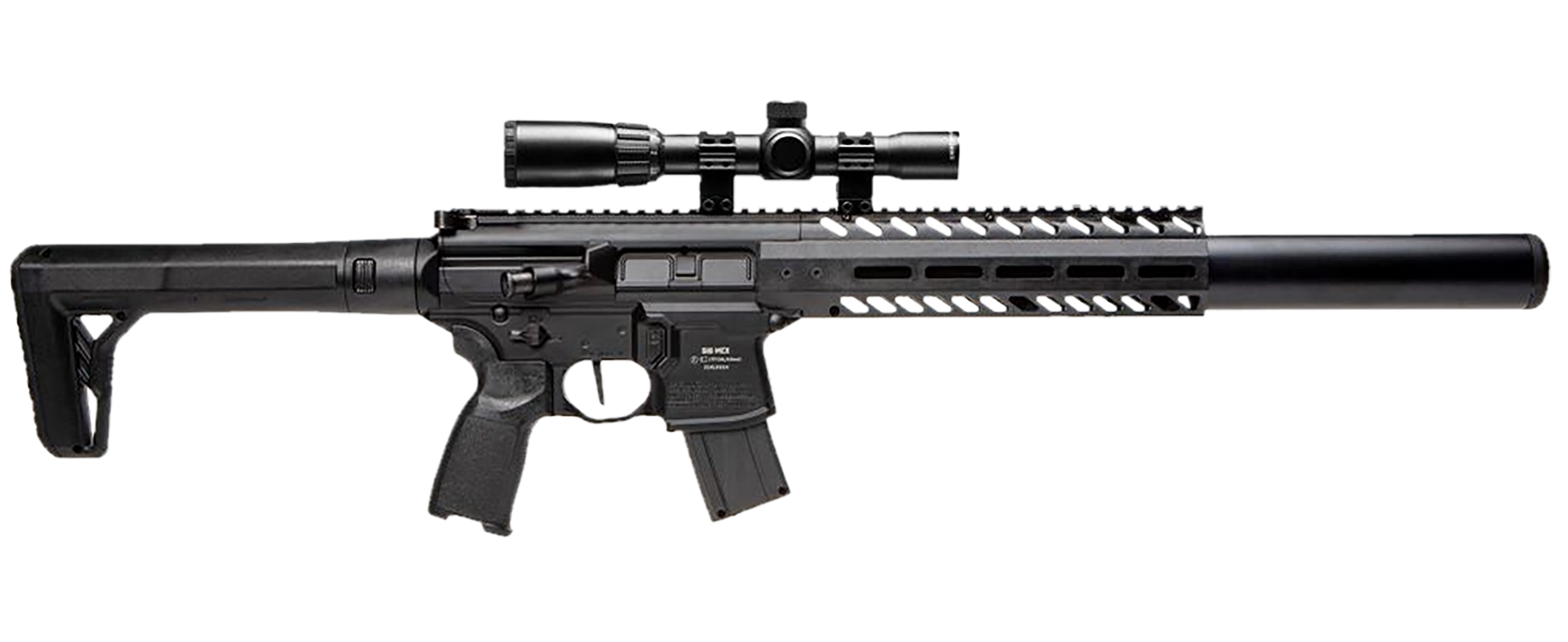 Created from the same robust foundation as its predecessor, the sig mcx gen ii air rifle has been updated with improved accuracy and modified furniture and controls.Featuring an m-lok system handguard, flat blade trigger, reduced angle grip, a redesigned buttstock, and a low-profile recoil pad.Chambered in.177 pellet and complete with a rifled barrel and flip-up sights, the co2-powered sig mcx gen ii air rifle keeps you on target while delivering 30 rounds of semi-automatic firepower down range.Features: 1-4x24mm scope.Ambidextrous manual safety levers.Quick detach buttstock houses 88g or 90g co2 cartridges.