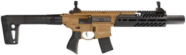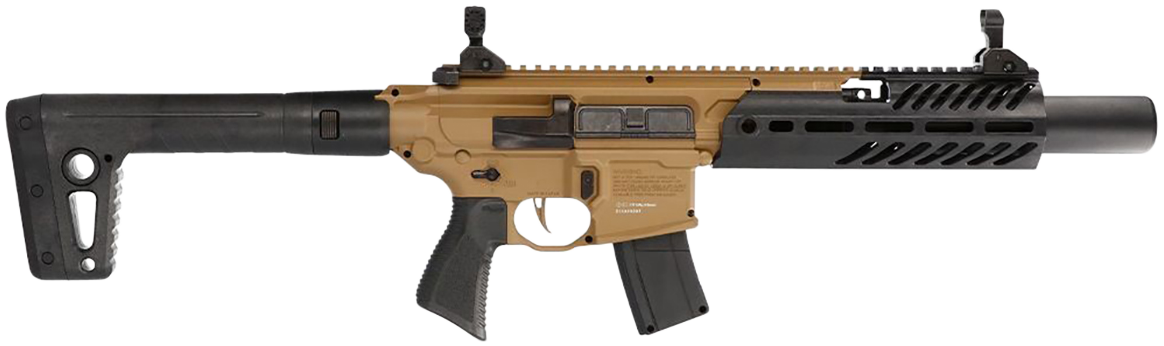 Mirroring the same design cues as the original, sig sauer airguns introduces the sig sauer mcx rattler canebrake.177 cal.Co2-powered pellet.The mcx canebrake.177 rifle comes with a metal receiver, paired to a synthetic handguard with an integrated m-lok modular locking accessory mounting system, flip-up sight on top of a full-length picatinny rail, and a shrouded barrel.The 177 cal.Mcx rattler canebrake keeps you on target longer with fewer reloads utilizing its 30 round sig rapid pellet magazine.Based on the innovative designs of the sig mcx rattler canebrake, this co2 model with flip-up sights and 30 round magazine is ideal for training and practice.Mcx rattler canebrake air rifle features include: 30 round.177cal magazine, flat blade trigger, front / rear flip-up sights, 90g co2 power source (not included), mlok handguard and shroud trainer, muzzle velocity up to 600 fps